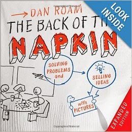 Dan Roam explica su planteamiento en «The Back of the Napkin». Un libro que describe cómo con un papel y un lápiz puedes reflejar cualquier idea por compleja que sea. Las imágenes son simples e inmediatas, nos permiten reflexionar y transmitir las ideas de una forma clara.