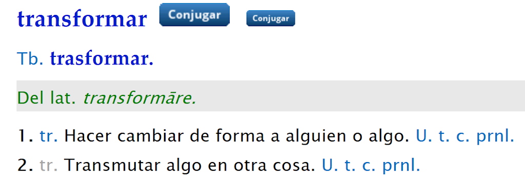 Dado que hablamos de definiciones, empecemos por las palabras “transformación” o “transformar”, ¿que es según la Real Academia Española (RAE)?:
