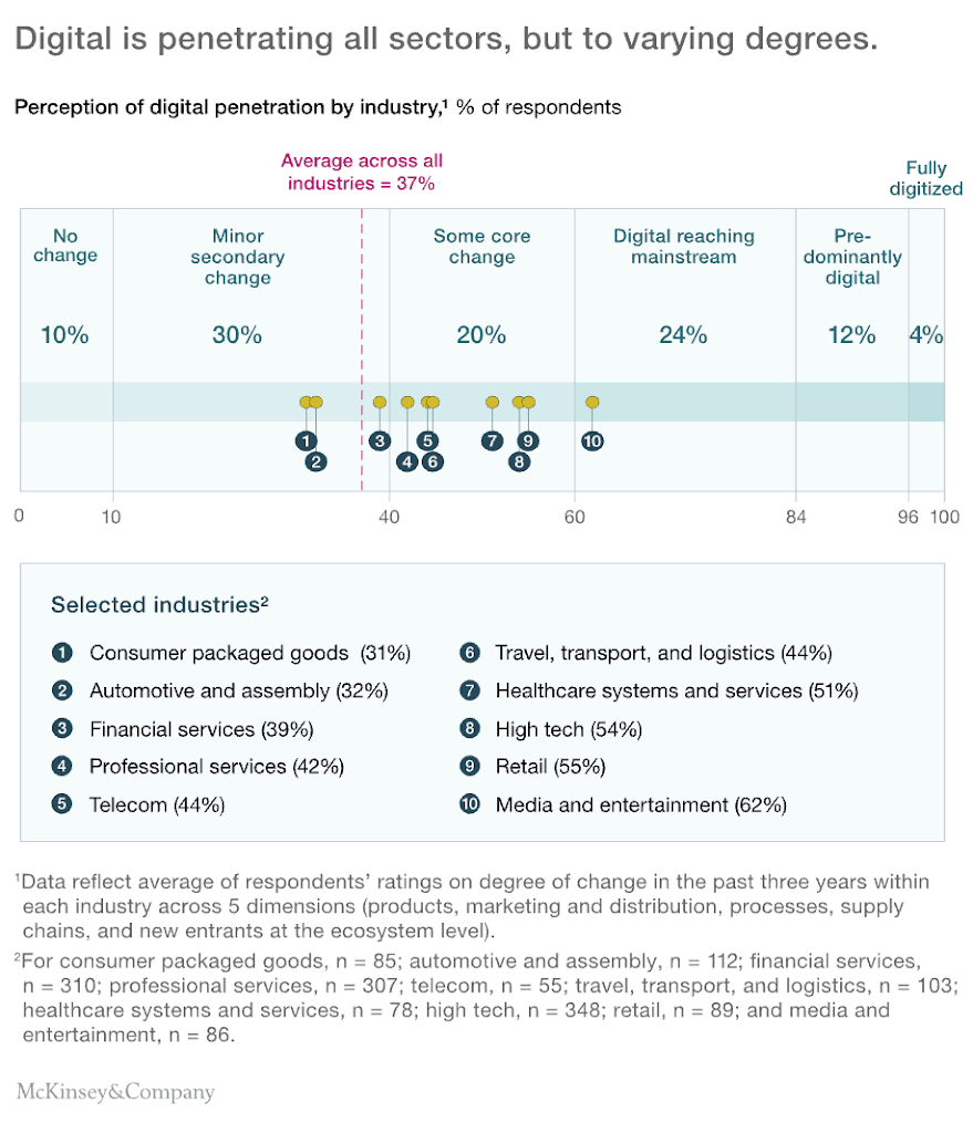 Estado de Transformación Digital por sectores egún McKinsey