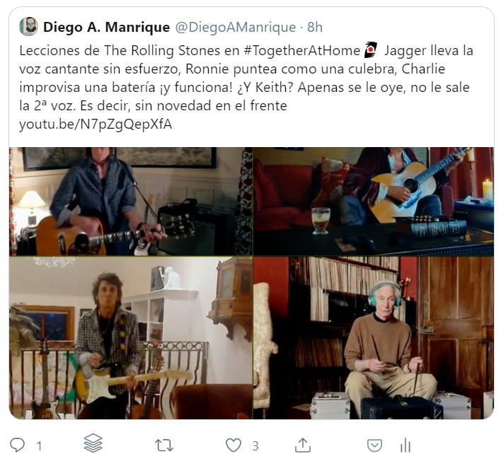 De un clásico como Kahneman a unos clásicos como los Rolling que, en pleno confinamiento, grabaron esta maravilla.